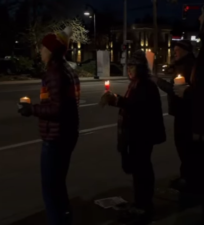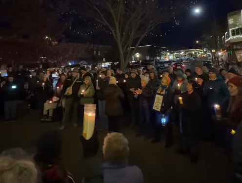 Candle Vigil to Remember and Honor Alex Pretti in Ashland Oregon Singing America the Beautiful.