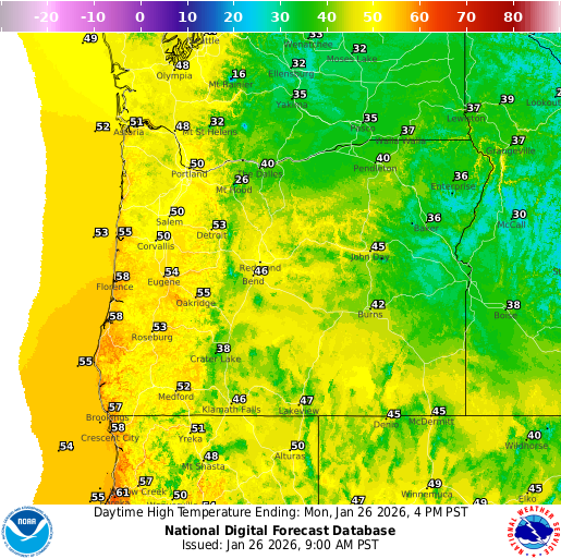 By Tuesday afternoon, the pattern begins to change. Clouds thicken and rain becomes more likely by late day and into Tuesday night. Light rain is expected, with chances increasing into Wednesday. While no heavy rainfall is indicated, wet pavement and reduced visibility could slow traffic along Highway 62 and Interstate 5 during peak travel hours.