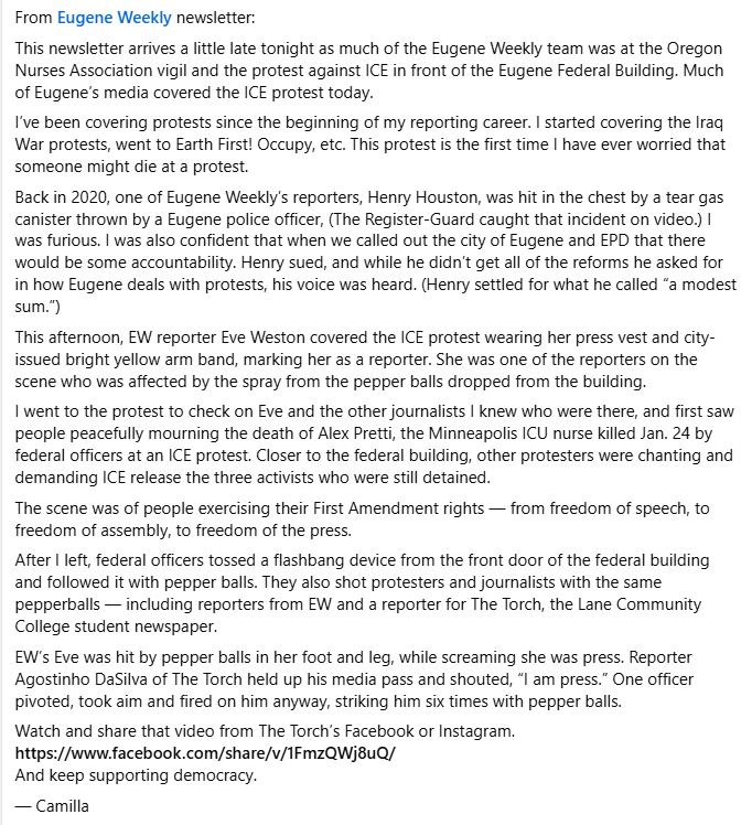 Rogue Indivisible of Josephine County was already planning on putting together an ICE protest, but with the recent news coming out of Minneapolis, the group says more people turned out because people are frustrated with the ongoing ICE enforcement.