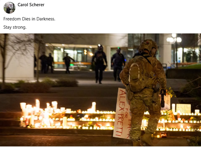 Candle Vigil to Remember and Honor Alex Pretti in Ashland Oregon Singing America the Beautiful.