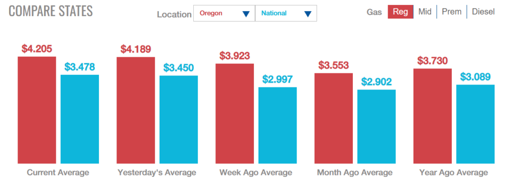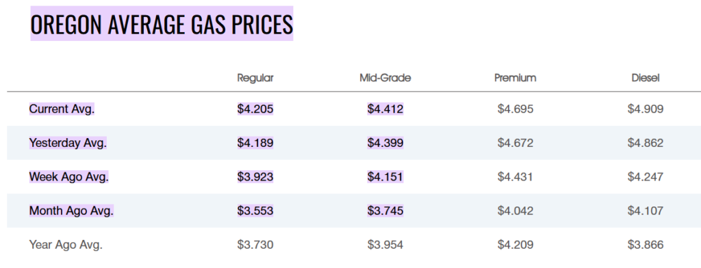Prices have risen recently due to a combination of higher crude oil costs and a seasonal switch to summer-blend fuel.  It is recommended to check apps like GasBuddy for real-time prices at specific Eugene stations to find the lowest cost. https://www.gasbuddy.com/gasprices/oregon/medford