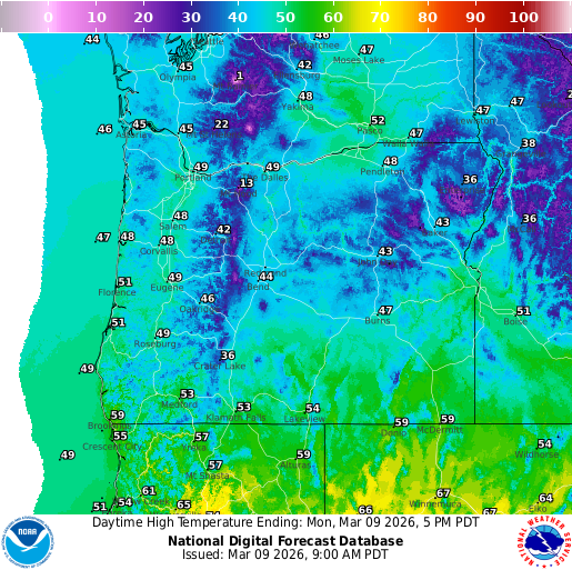 Southern Oregon (including the Rogue Valley, Medford, and Ashland) is experiencing cool, mostly cloudy weather to start the week, with temperatures for Monday, March 9, 2026, reaching highs in the mid-40s to low-50s°F and lows around 28°F to 30°F.