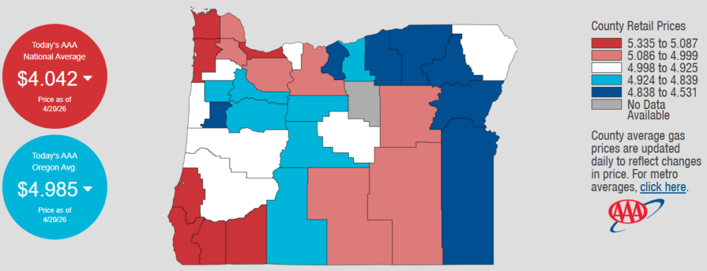 4/20/2026 — Gas Prices in Oregon Today